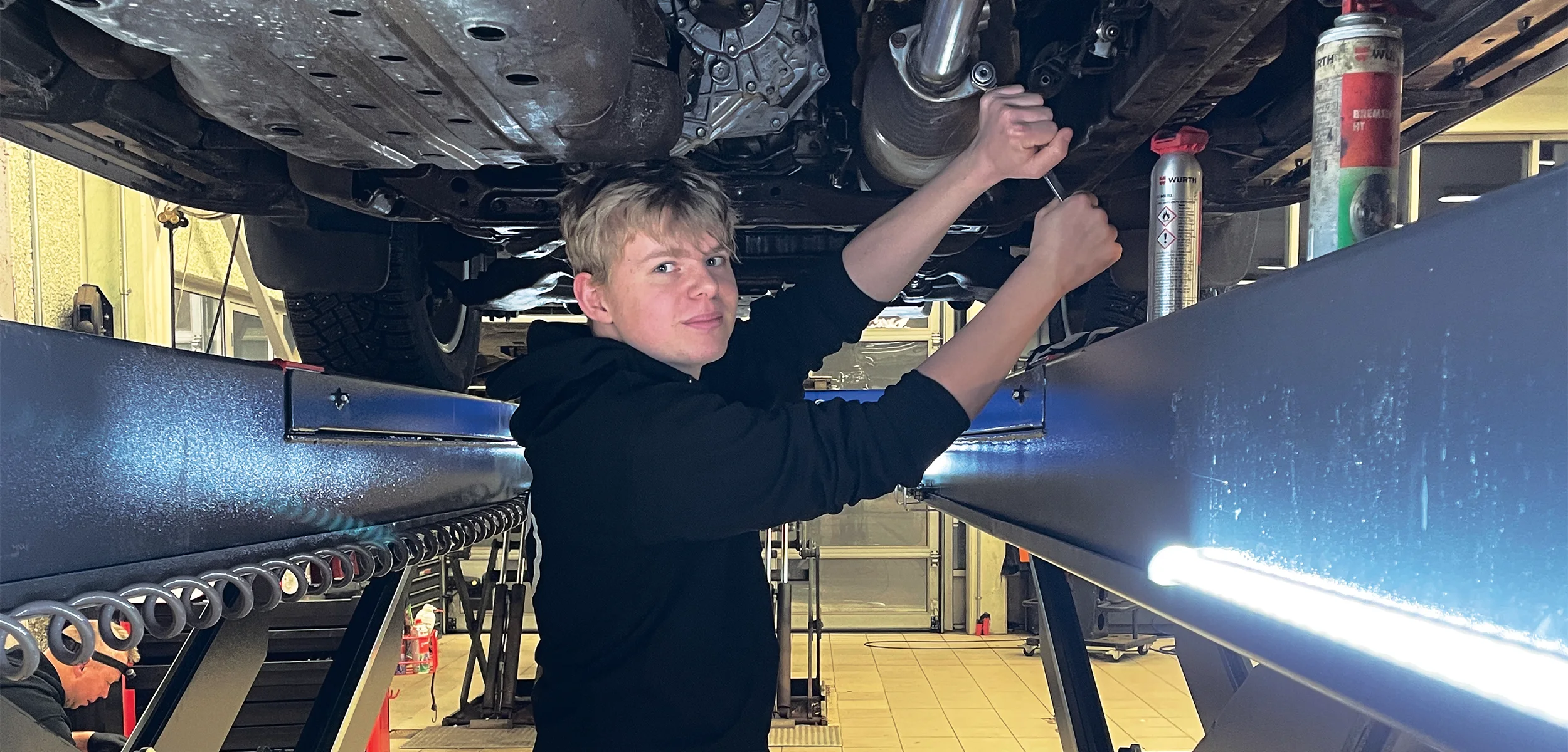 – Det kjem an på kva bilar vi får inn på verkstaden. Nokre dagar er det reparasjonar, andre dagar er det vedlikehald. Men eg kan ikkje ta ansvar for EU-kontroll før eg har fagbrevet. Elles passar både verkstaden her og Bilbransjens opplæringskontor (BOK) på at eg får prøve meg på alt som må til for å ta fagbrev som bilmekanikar, lette køyretøy.